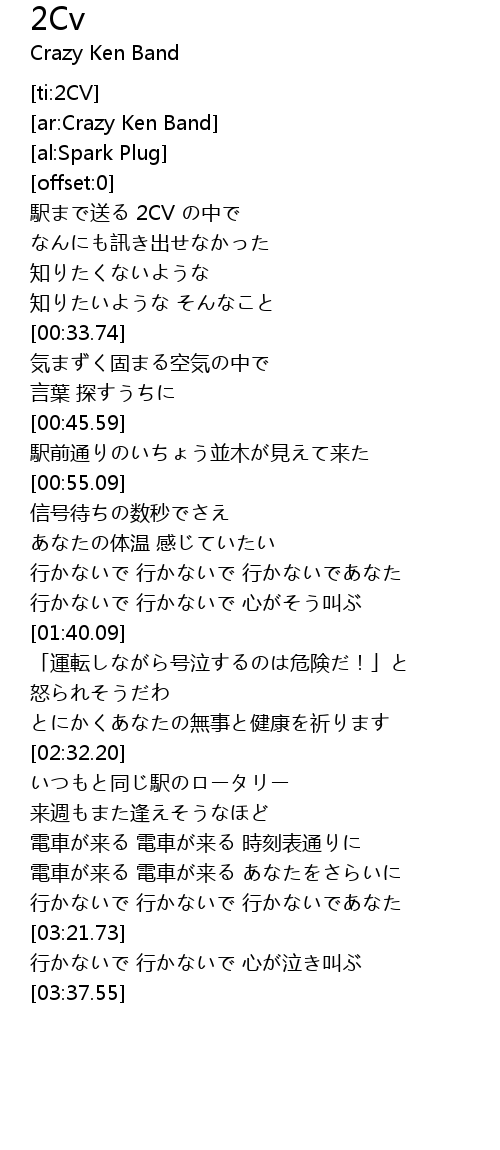 | [00:14.17] | 駅まで送る 2CV の中で |