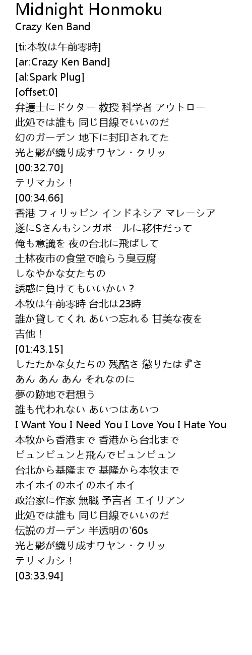 | [01:18.20] | 本牧は午前零時 台北は23時 |