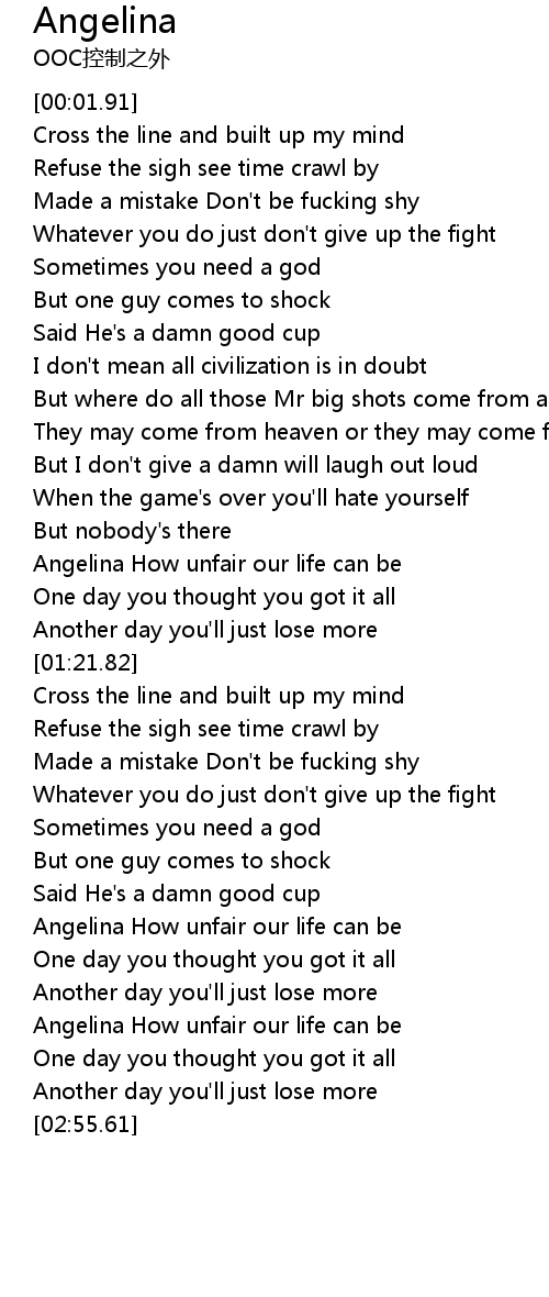 | [01:54.17] | Made a mistake Don't be fucking shy |