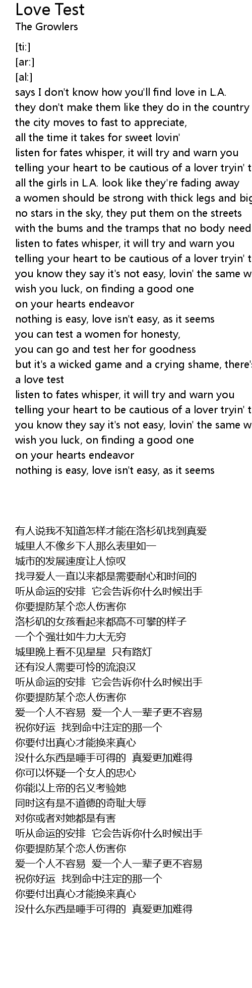 but it's a wicked game and a crying shame, there's no way to give her a love test |
