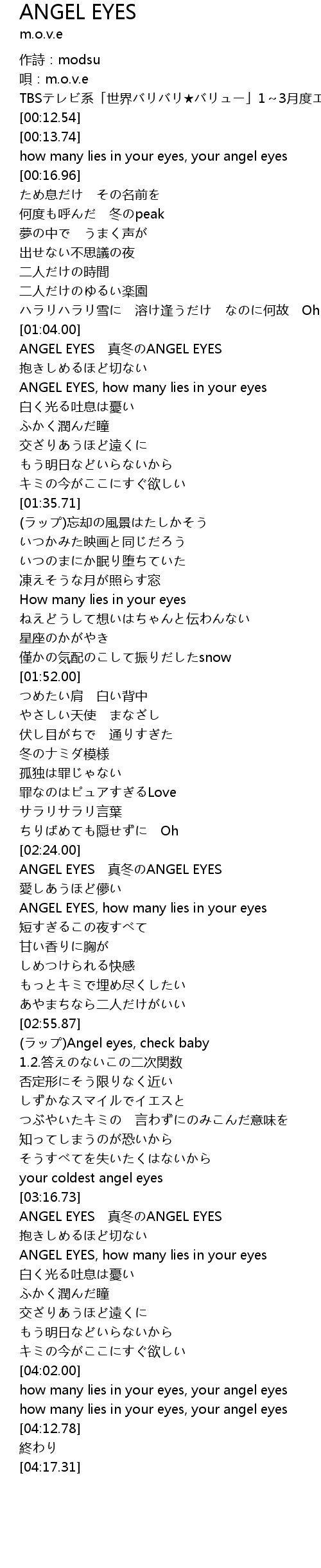 | [03:38.31] | ANGEL EYES, how many lies in your eyes |