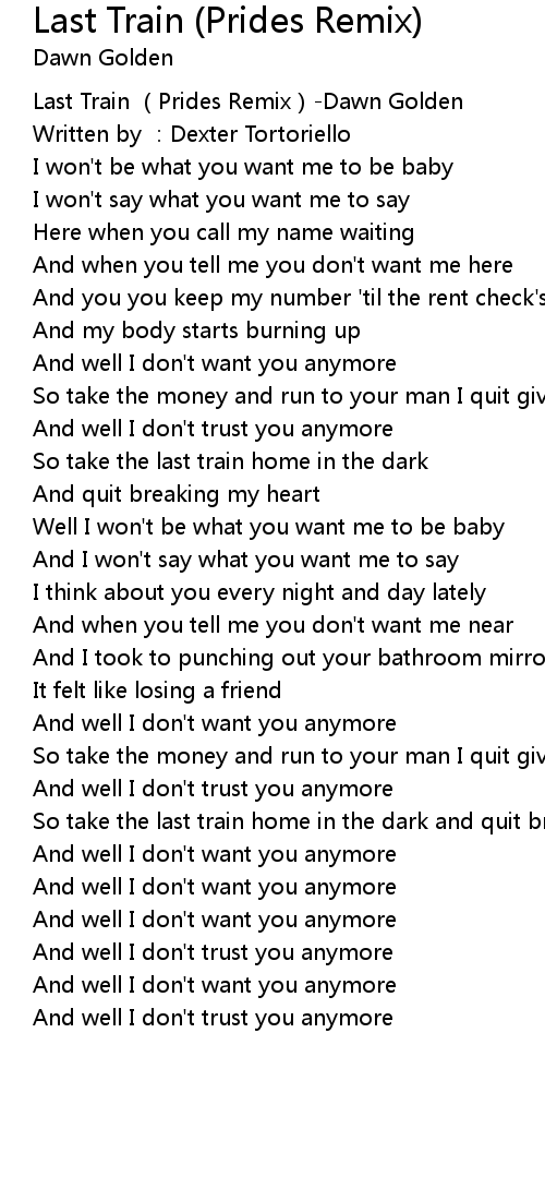 | [00:00.61] | Last Train Prides Remix Dawn Golden |