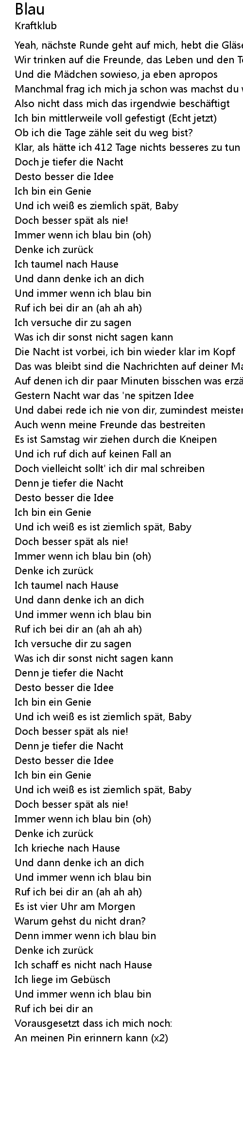 | Manchmal frag ich mich ja schon was machst du wohl grade so | |