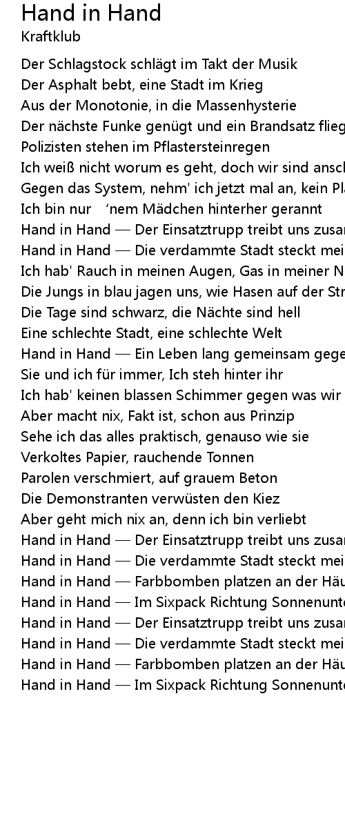| Hand in Hand Die verdammte Stadt steckt mein Herz in Brand | |