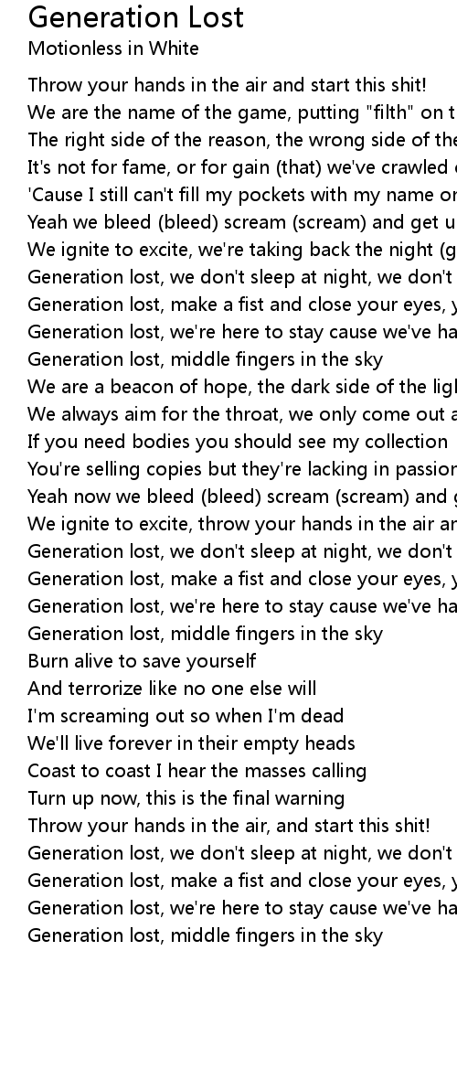 Generation lost, we don't sleep at night, we don't give a... |