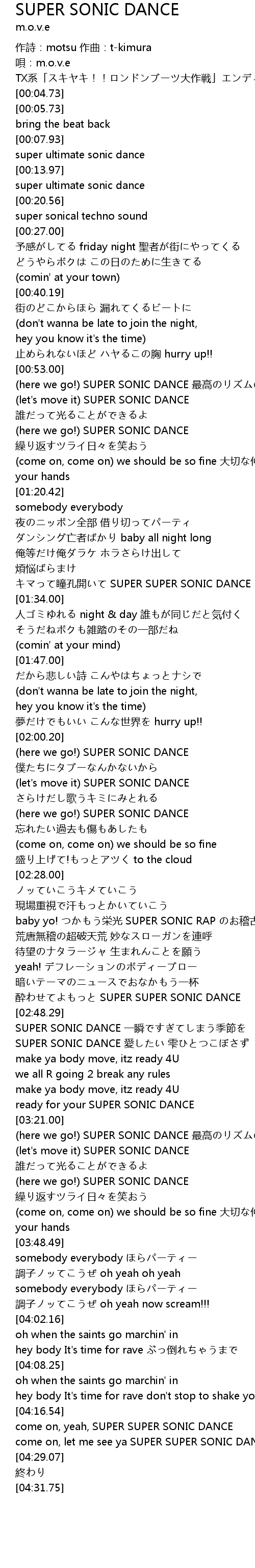| [04:23.64] | come on, let me see ya SUPER SUPER SONIC DANCE |