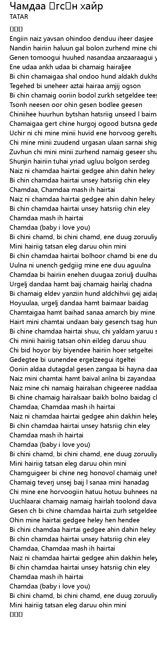 | [01:31.70] | Bi chin chamdaa hairtai bolhoor chamd bi ene duug duulna |