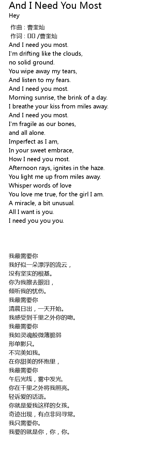 | [00:50.26] | And I need you most. |