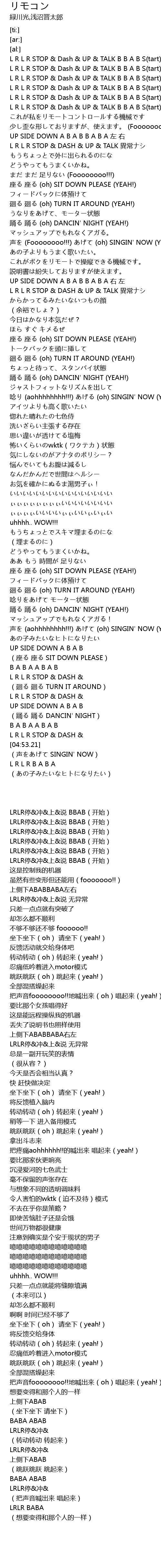 | [00:14.67] | L R L R STOP & Dash & UP & TALK B B A B S(tart) |
