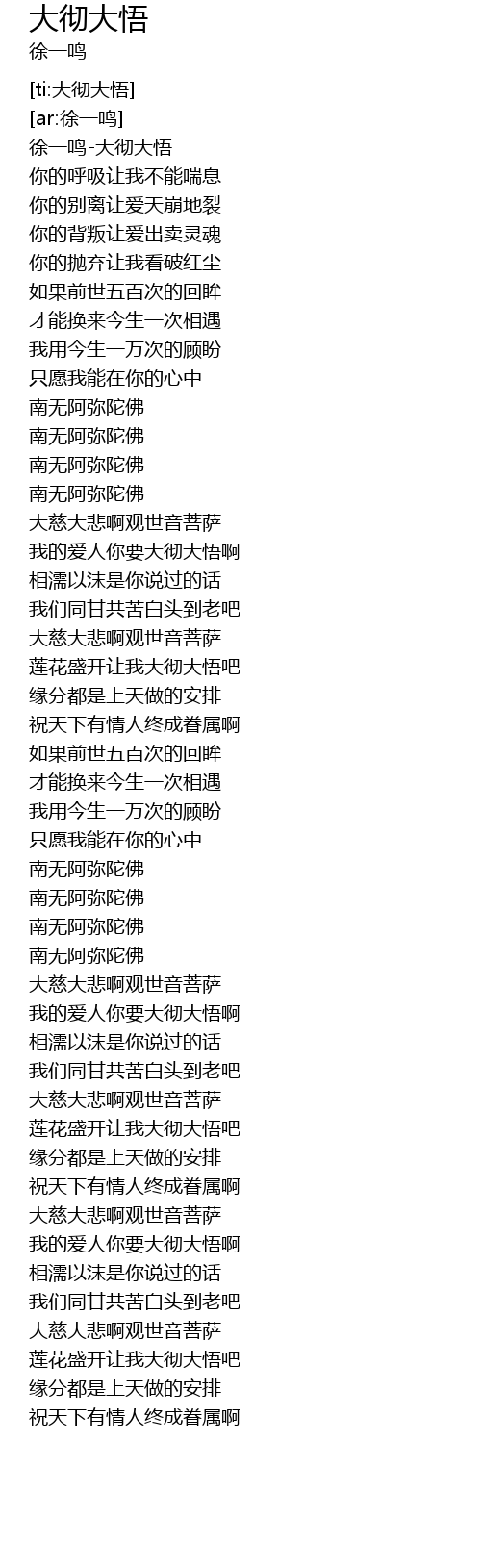 | [00:01.107] | 徐一鸣-大彻大悟 |