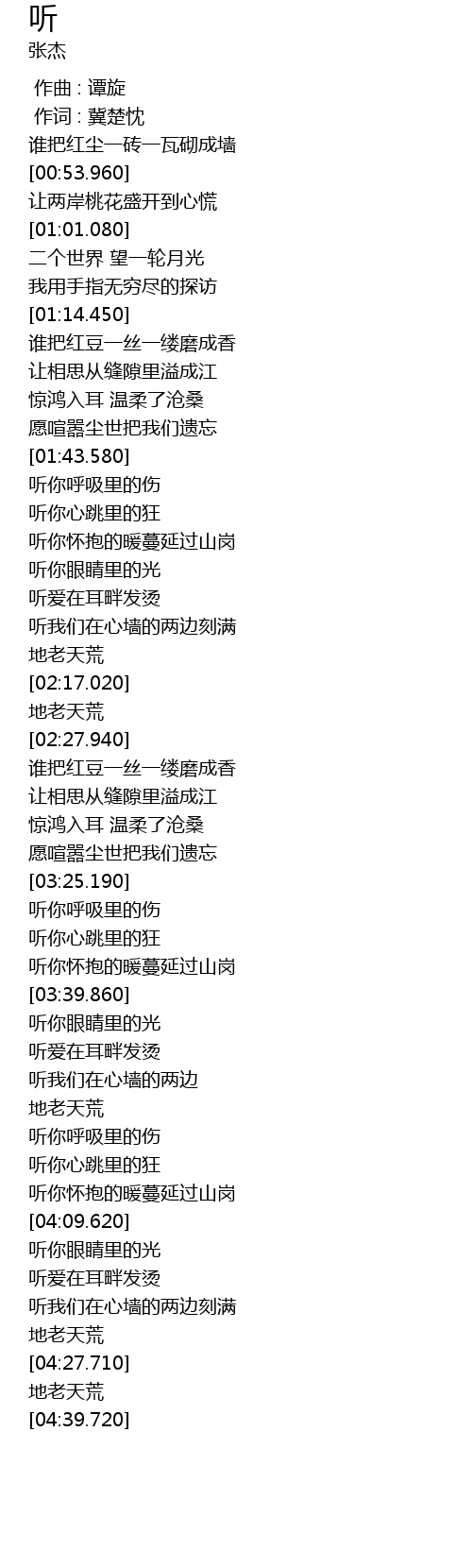 | [03:59.710] | ting ni xin tiao li de kuang |