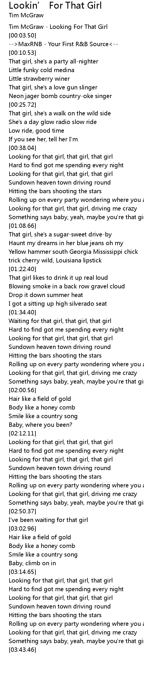 Tim McGraw - Looking For That Girl |