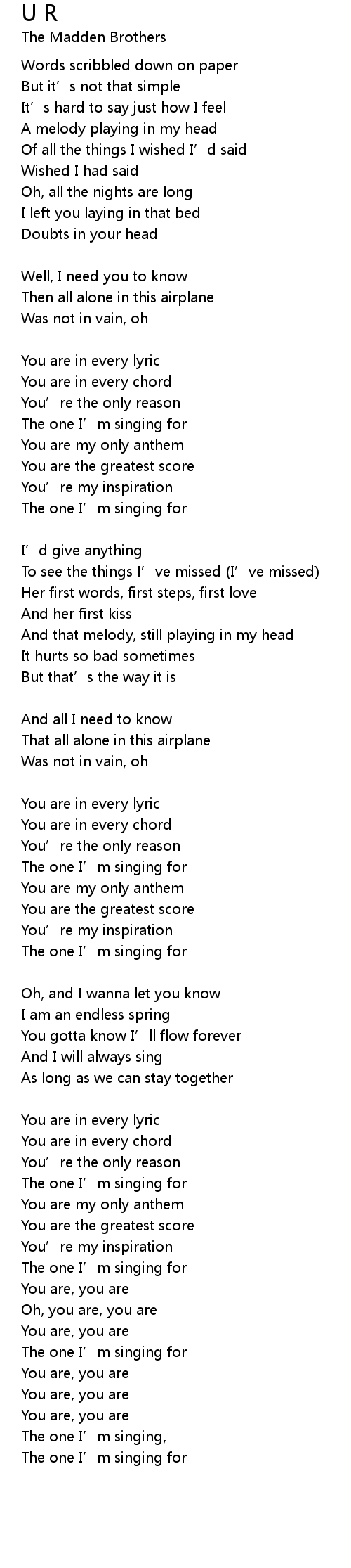 | Song | U R |