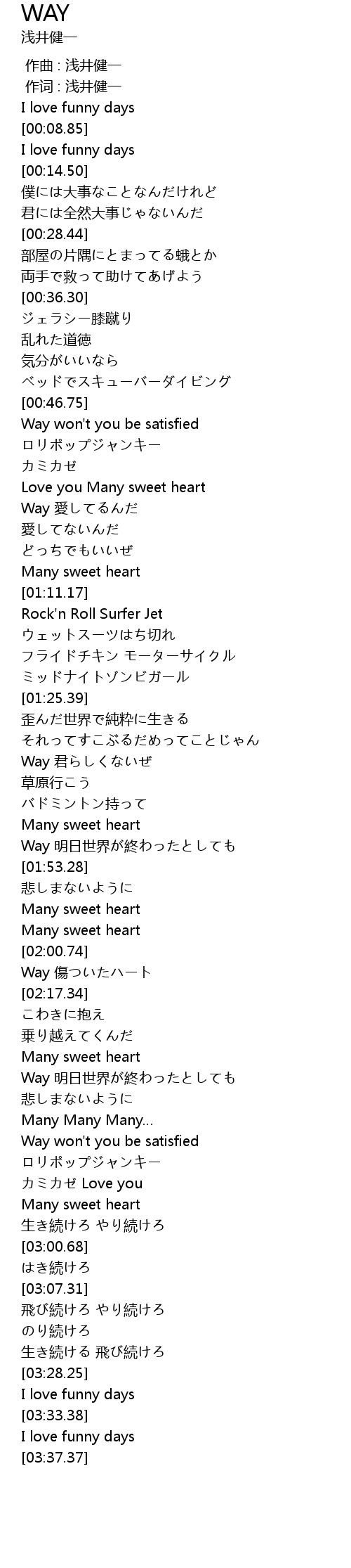 | [00:58.06] | Way 愛してるんだ |