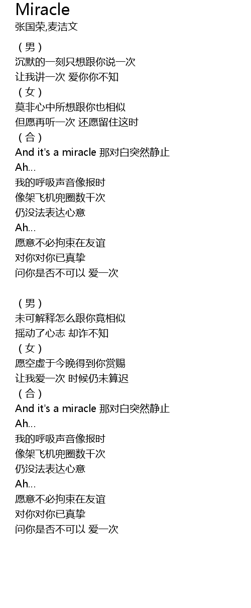 | And it' s a miracle nà duì bái tū rán jìng zhǐ | |