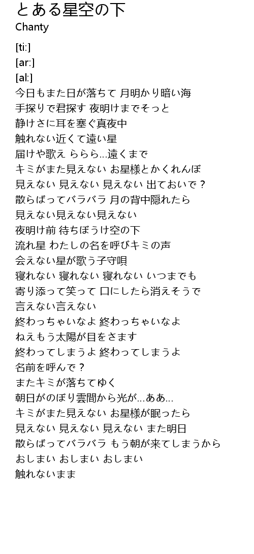 | [04:12.16] | キミがまた見えない お星様が眠ったら |