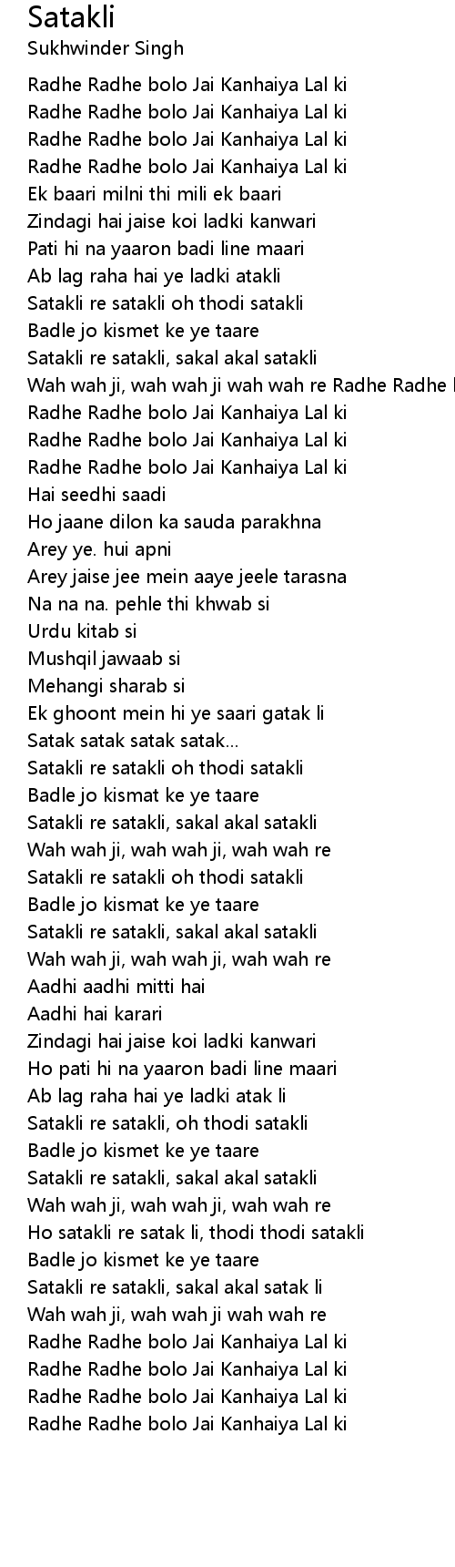 Satakli re satakli oh thodi satakli |
