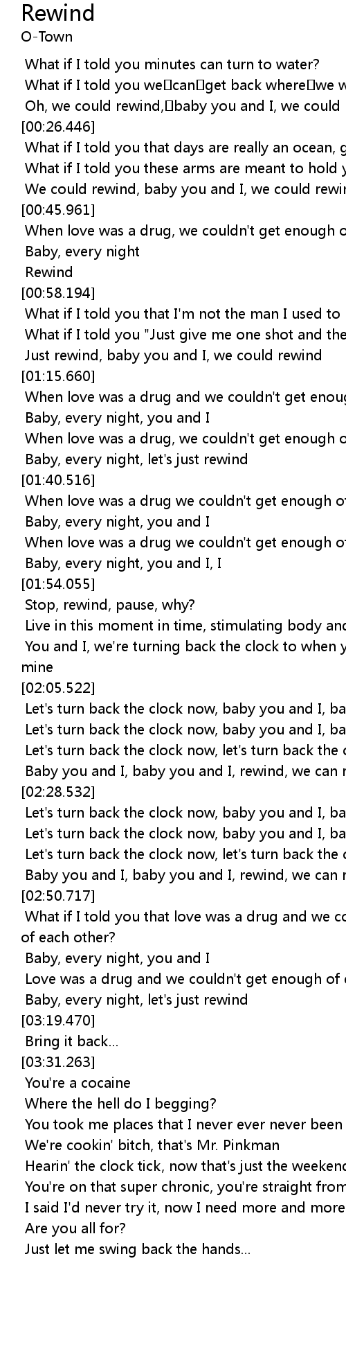 | [01:35.375] | Baby, every night, let' s just rewind |