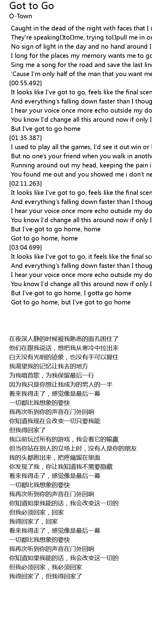| [03:50.045] | Got to go home, but I' ve got to go home |