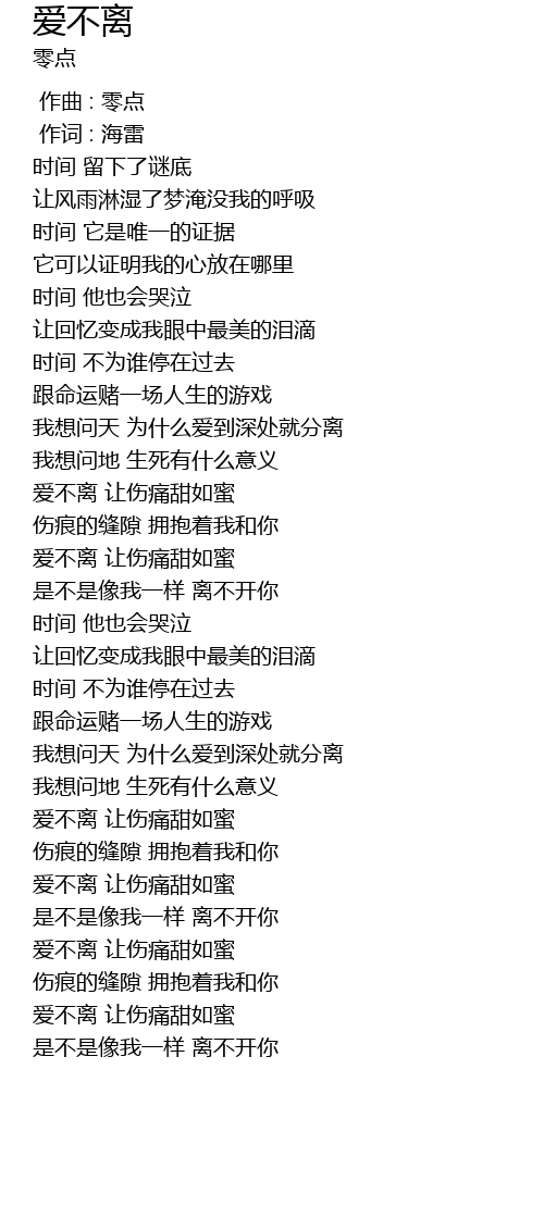 | [04:11.240] | ài bù lí ràng shāng tòng tián rú mì |