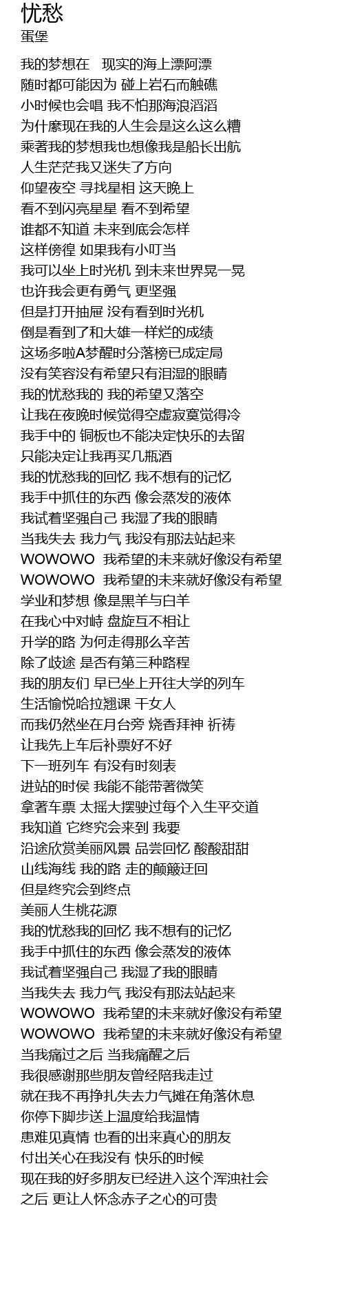 | [02:15.000] | 我的忧愁我的回忆 我不想有的记忆 |