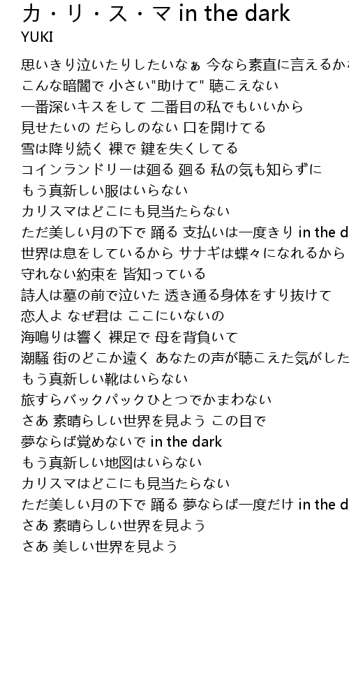 | さあ 素晴らしい世界を見よう この目で 夢ならば覚めないで in the dark | |