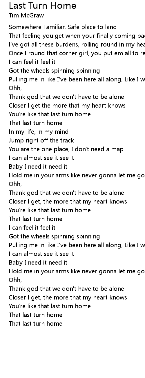 You're like that last turn home |