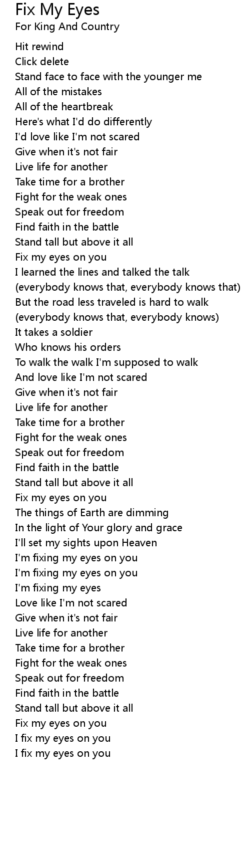 Fix my eyes on you |
