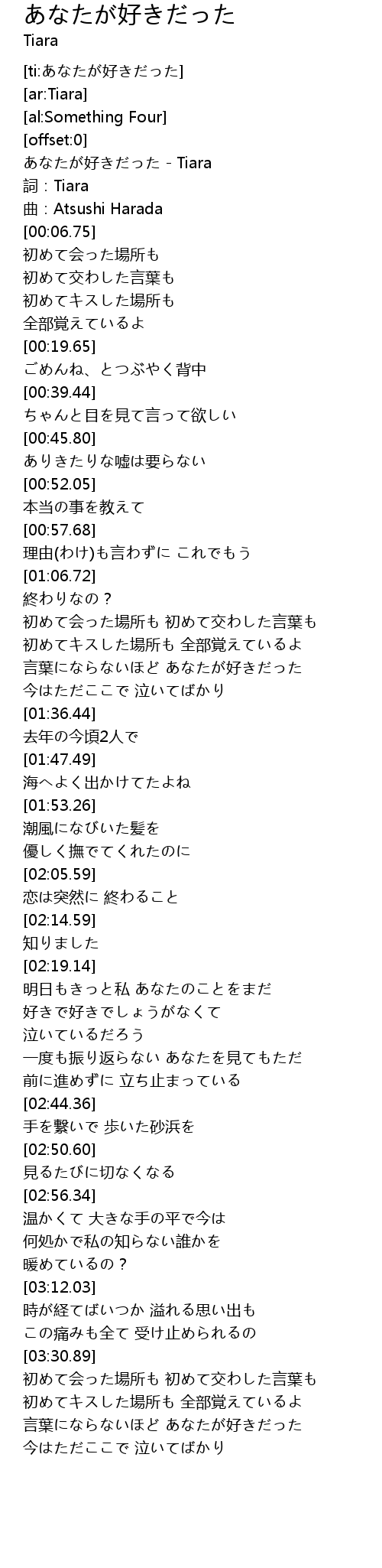 | [03:44.35] | 言葉にならないほど あなたが好きだった |