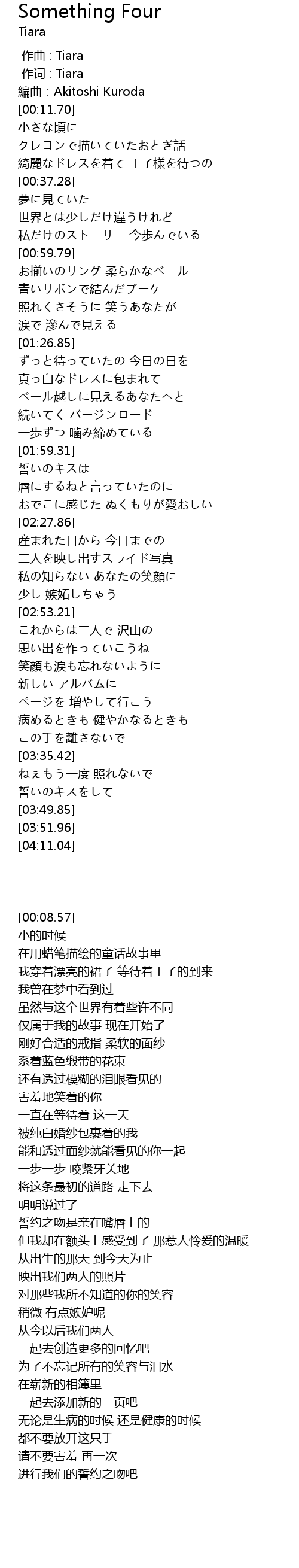 | [01:01.77] | お揃いのリング 柔らかなベール |
