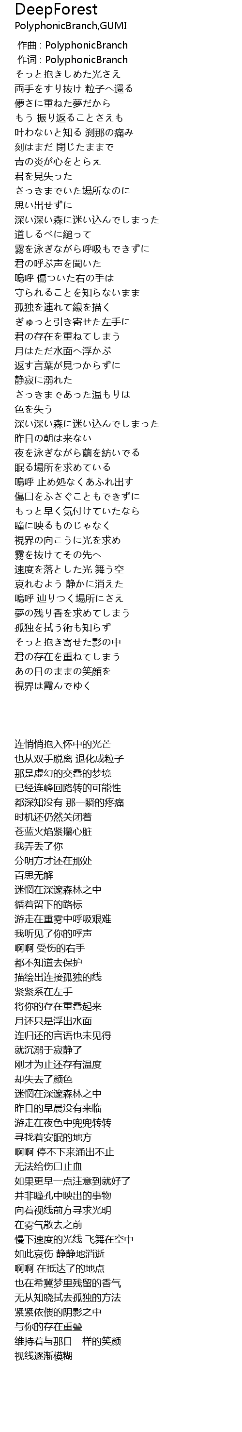 | [00:46.60] | 深い深い森に迷い込んでしまった |