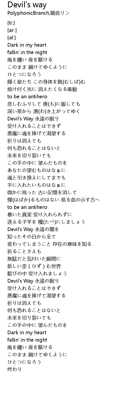| [02:13.23] | Devil's Way 永遠の闇を |