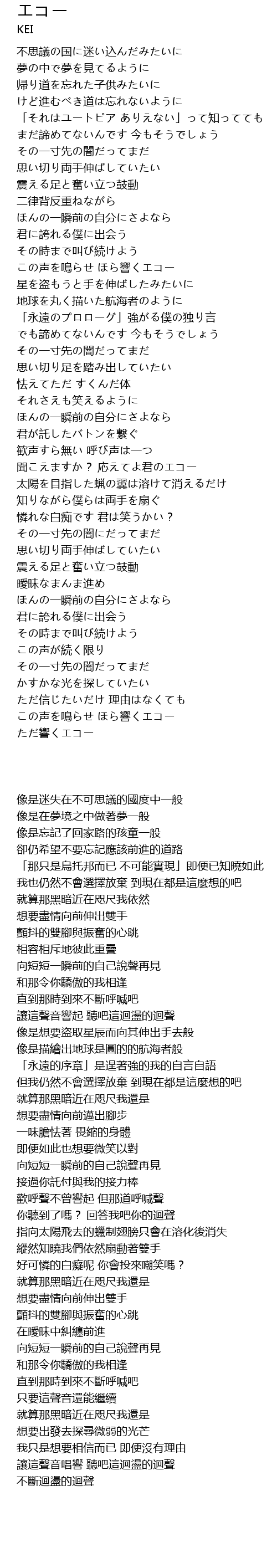 | [03:01.44] | 聞こえますか? 応えてよ君のエコー |
