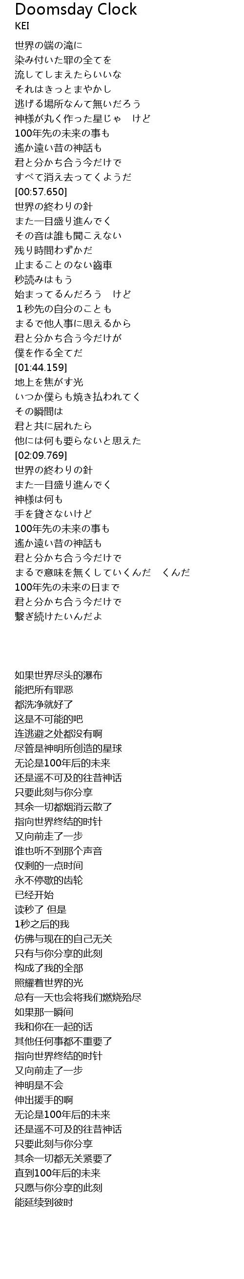 | [00:58.990] | 世界の終わりの針 |