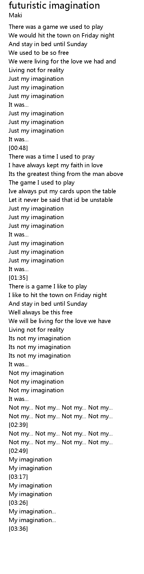 futuristic imagination Lyrics