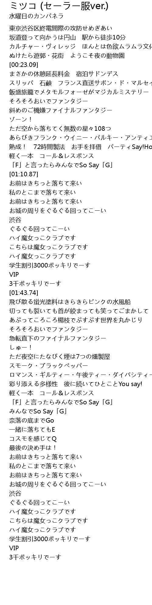 | [01:56.61] | 飛び散る蛍光塗料はきらきらピンクの水風船 |