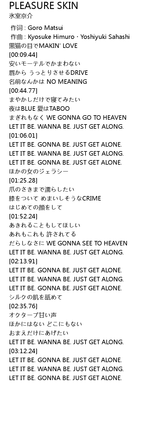 | [03:12.42] | LET IT BE. WANNA BE. JUST GET ALONG. |