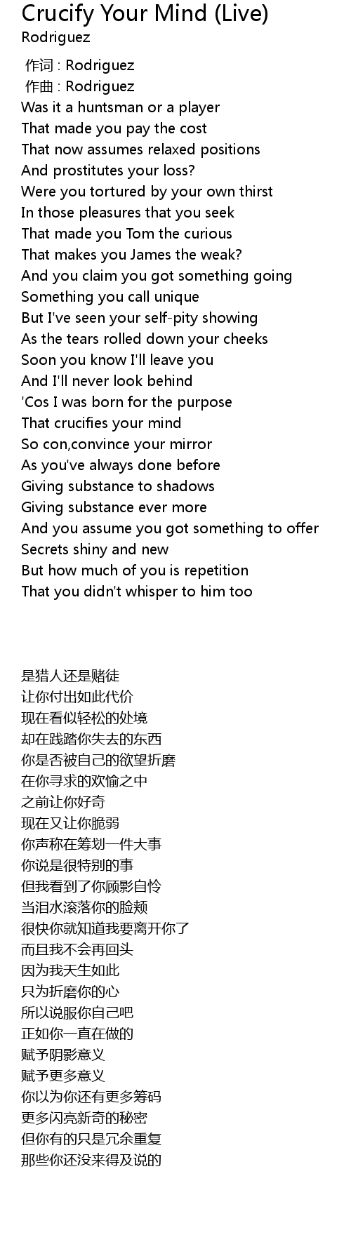 | [00:01.000] | zuò qǔ : Rodriguez |
