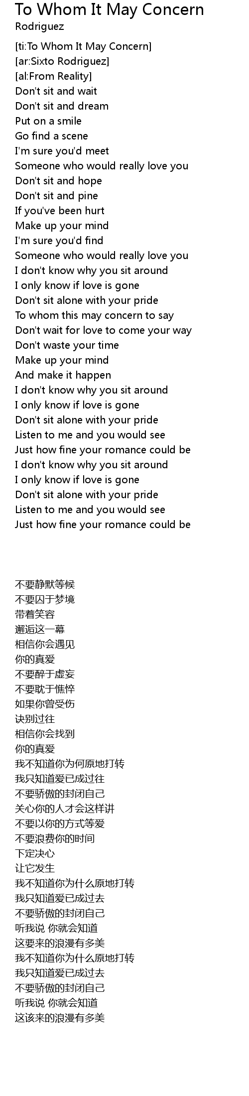 [ti:To Whom It May Concern] |