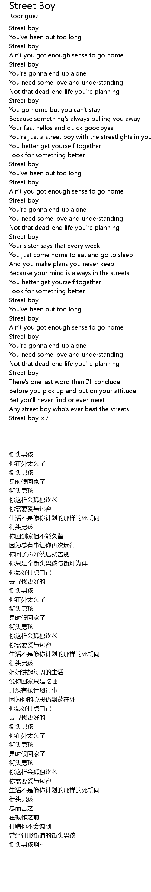 | [03:01.000] | Any street boy who' s ever beat the streets |