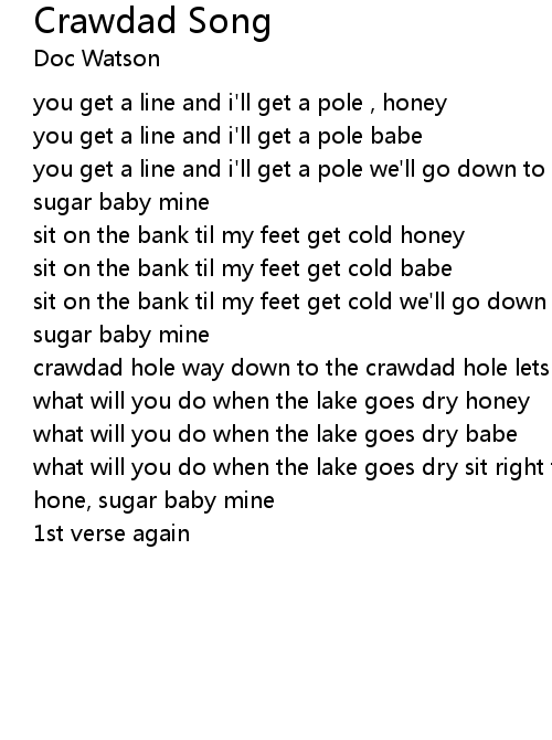 sit on the bank til my feet get cold we'll go down to the crawdad hole honey, sugar baby mine |