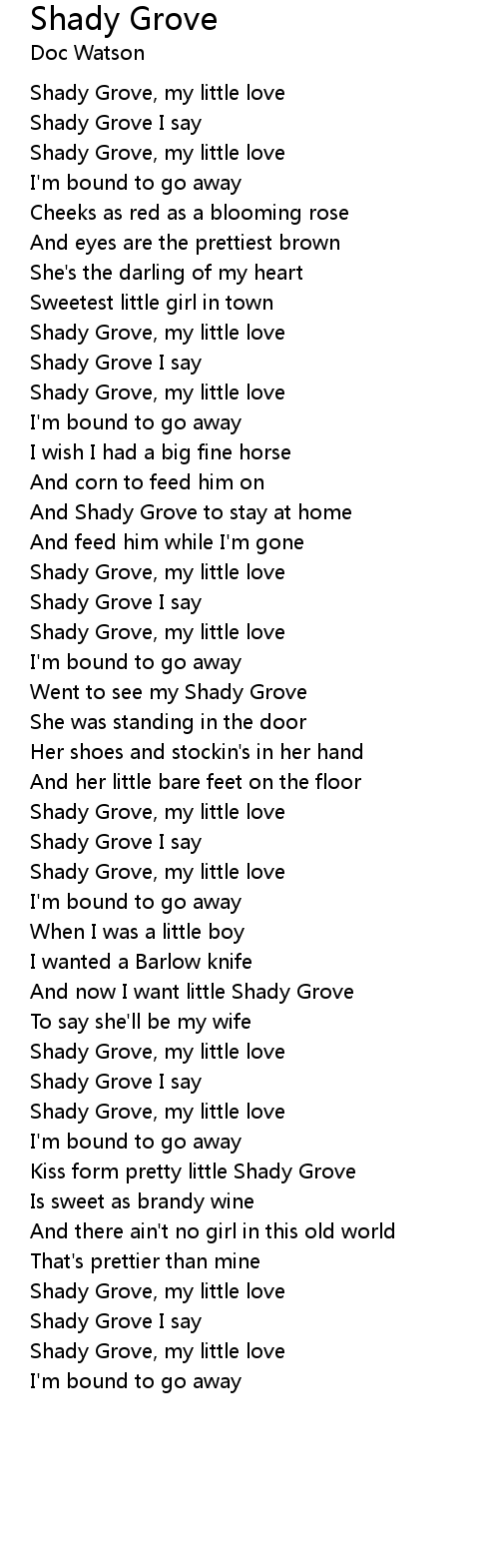 And now I want little Shady Grove |