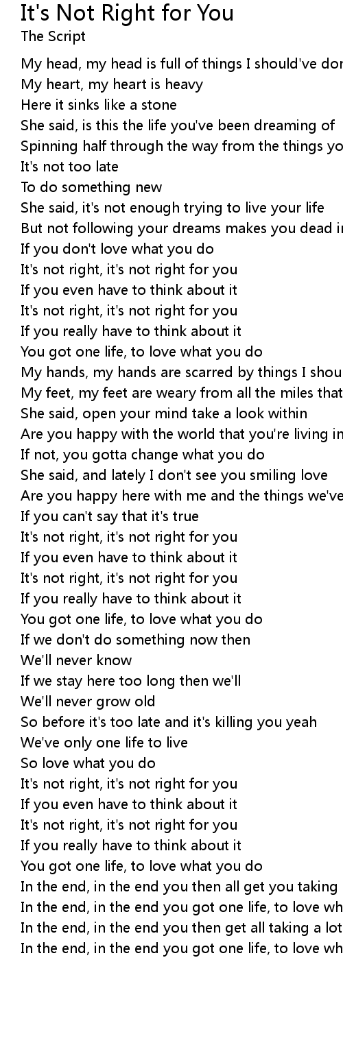 It's not right, it's not right for you |