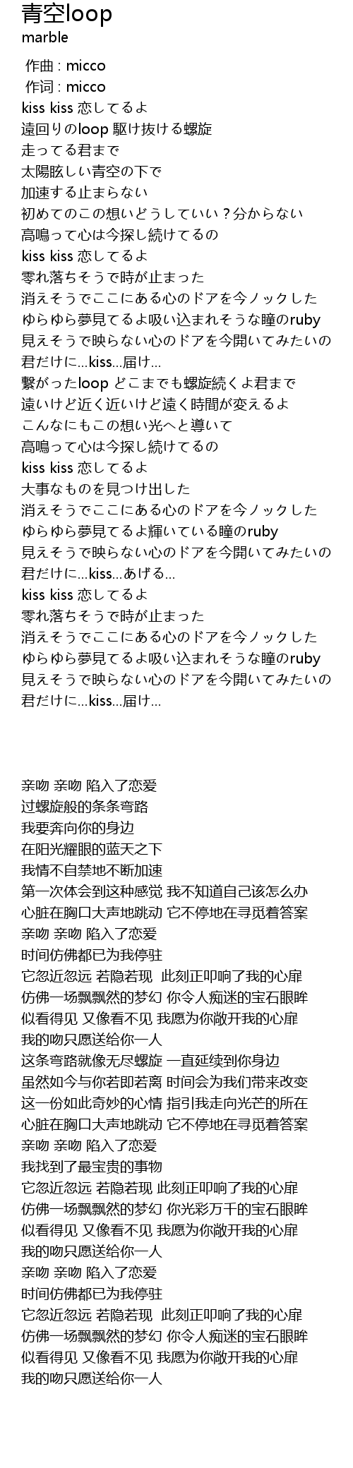 | [01:30.910] | 繋がったloop どこまでも螺旋続くよ君まで |