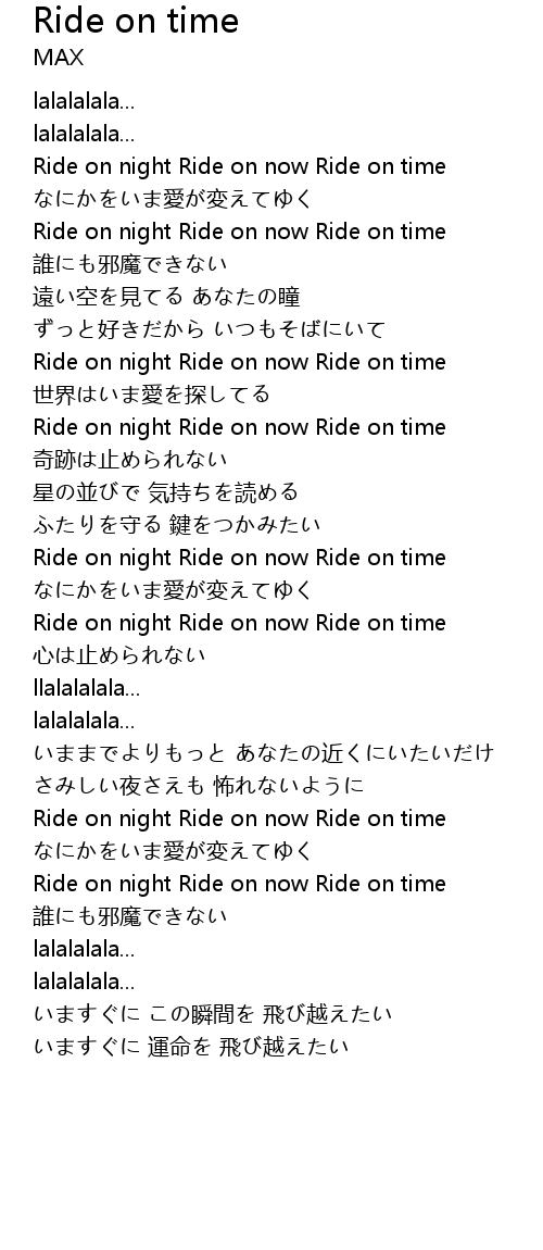 | Ride on night Ride on now Ride on time | |