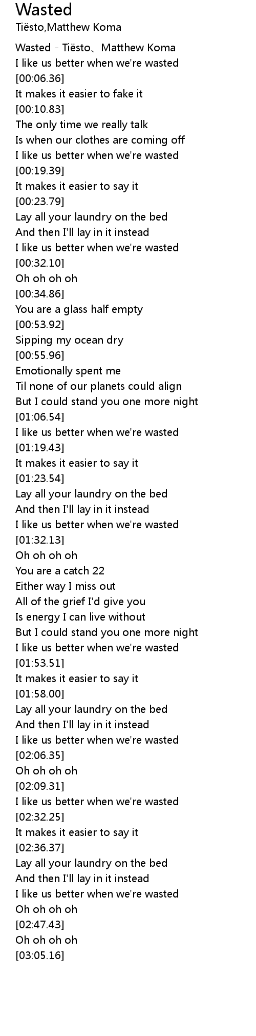| [00:00.94] | Wasted - Tiësto、Matthew Koma |