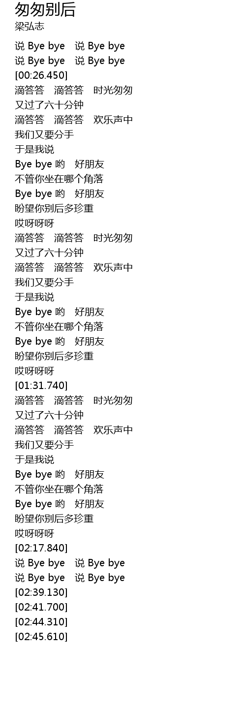 | [01:18.990] | Bye bye 哟 好朋友 |