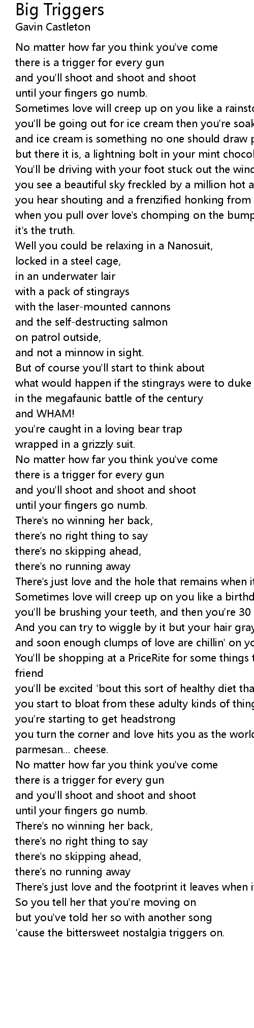 'cause the bittersweet nostalgia triggers on. |