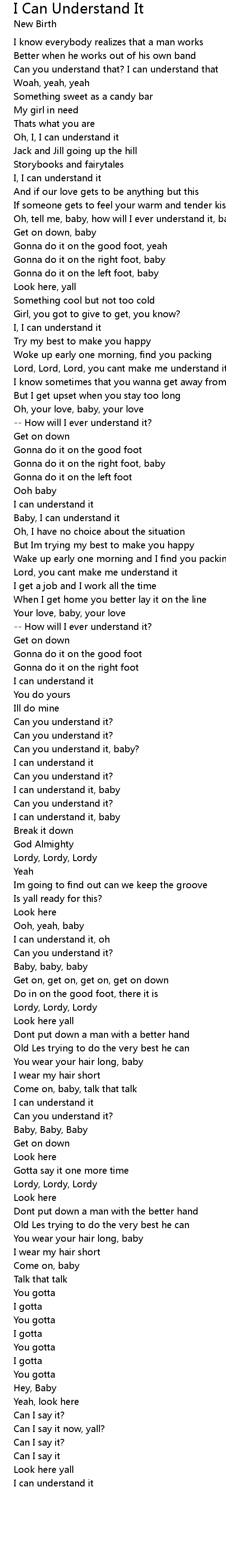 Baby, I can understand it |