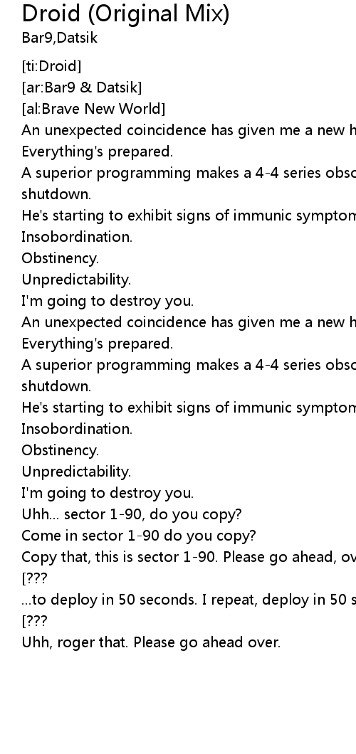 | [04:28.63] | Come in sector 1-90 do you copy? |